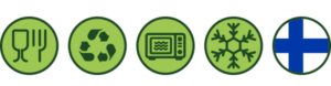Luontoystävällistä, kierrätettävää PE-elintarvikekartonkia.